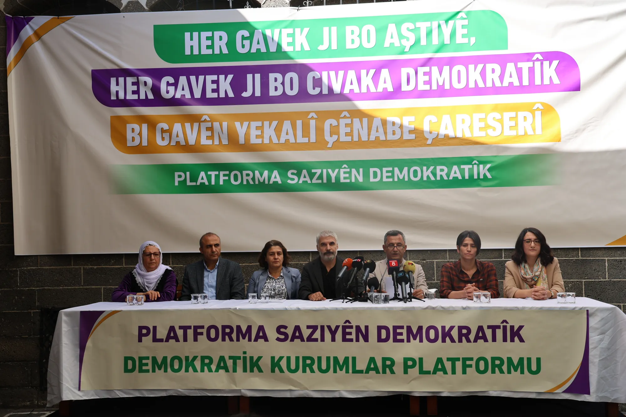 Platorma Saziyên Demokratîk jî li Qonala Îskender Paşa ya Sûra Amedê têkildarî vekişîna gêrîla ya di 26ê Cotmehê de civîna çapemeniyê pêk anî. Di civînê de li salonê pankarta mezin a li ser “Her gavek ji bo aştiyê, Her gavek ji bo civaka demokratîk, Bi gavên yekalî çênabe çareserî” vekir. Endamên Platformê ku ji nûnerên TJA, OHD, DBP, DEM Partî, MED TUHAD-FED, MEBYA-DER û DÎKê û nûnerên gelek saziyên demokratîk amade bûn.