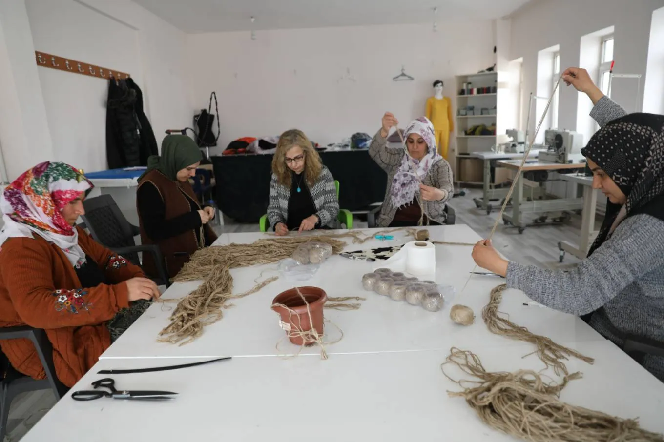 Li Navenda Çand û Jiyanê ya Jinan a Sixkê ya ku di bin banê gerînendetiya Xizmetên Jin û Malbatê de dixebite, ji bo tovên rihanê yên di qazanan de bên dayîn tûncên hevrîşim yek bi yek tên dirûtin. Rêvebera Navendê Hamdiye Engîn diyar kir ku xebatên 8ê Adarê bi keda jinan pêk hatine. Engîn got, “Me polên serayên xwe tijî ax kirin û amade kirin. Li şûna rihana hazir, me xwest em çandina tovan ji jinên ku em ê diyarî bikin bihêlin. Em dixwazin girêdana wan a bi axê re bi bîr bînin. Ji bo van satilên ji jûtê daliqeyên Macrame di atolyeyên me de ji hêla jinan ve têne çêkirin. Her wiha ji ber ku tovên rihanê yên ku em ê belav bikin dê di tûrikên hevrîşimê de bin, hemû kîsik di atolyeya meya dirûtin û xişandinê de têne çêkirin. Armanca me ew e ku em tov diyarî 2 hezar jinan bikin. Em ê di 8’ê Adarê de jî diyariyên ku jinan amade kirine radestî jinan bikin.”