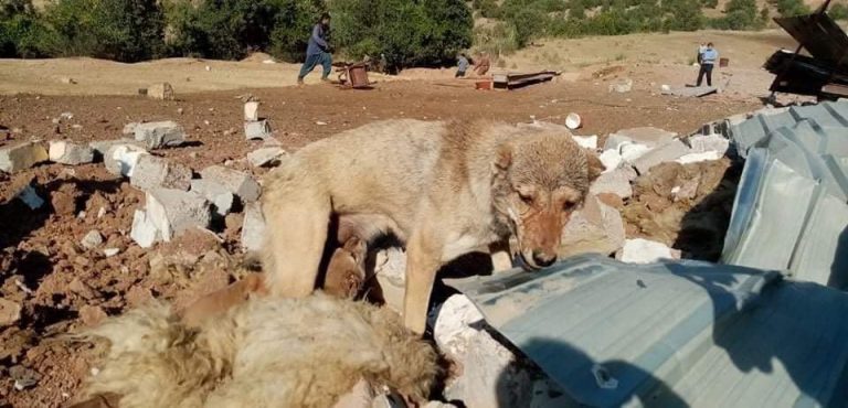 Li gorî ji dîmen jî xuya dibe, kuçikek dibin xirbeyan de mayî ji aliyê gundiyan ve tê rizgarkirin.