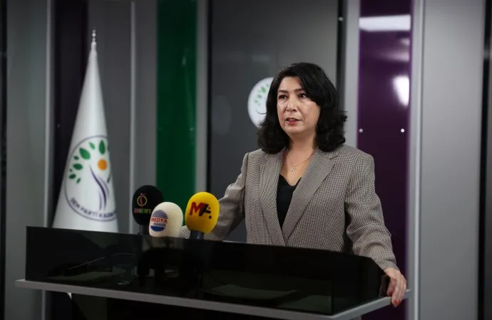 Berdevka Meclîsa Jinan a Partiya Wekhevî û Demokrasiyê ya Gelan (DEM Partî) Halîde Turkoglu, li avahiya partiya xwe derbarê bûyerên rojane û 25ê Mijdarê Roja Navneteweyî ya Têkoşîna li Dijî Tundiya li Ser Jinan, civîneke çapemeniyê li dar xist.