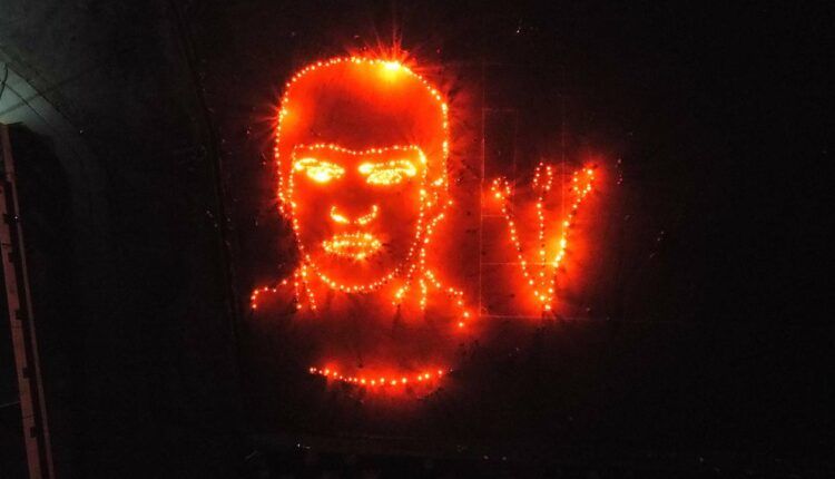 Xwendevanên Mexmûrê bi meşaleyan meşiyan û li qada Newrozê bi agirê meşaleyên Newrozê wêneyê Mazlûm Dogan xêz kirin.