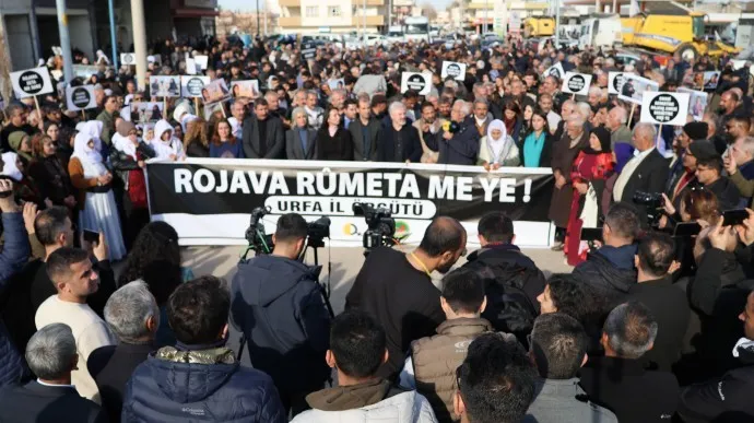 Hevserokên Giştî yên Partiya Herêmên Demokratîk (DBP) Çîgdem Kiliçgun Uçar û Keskîn Bayindir, Hevseroka Giştî ya Partiya Wekhevî û Demokrasiyê ya Gelan (DEM Partî) Tulay Hatîmogûllari, Hevserokê Giştî yê Partiya Sosyalîst a Bindestan (ESP) Mûrat Çepnî û gelek nûnerên partiyên siyasî û rêxistinên civaka sivîl jî di nav de, bi hezaran kes bi dirûşma "Bijî berxwedana Rojava" ji bo meşê hatin gel hev.