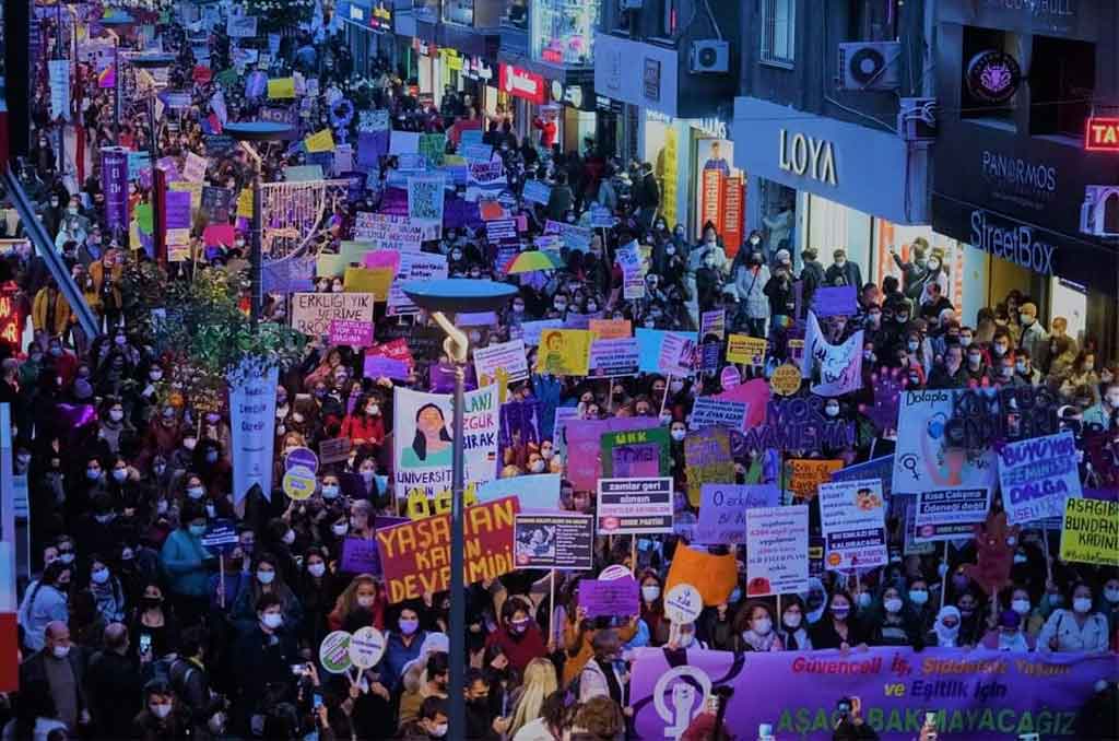 Wek tê zanîn ku di 8’ê Adarê Roja Jinan a Cîhanê de li gelek bajarên Tirkiyeyê bi hezaran jin tev li çalakiyên bi navê ‘Meşa Şevê ya Feminîstan a 8’ê Adarê’ bûn û Roja Jinên Cîhanê li gelek bajarên Tirkiye û Kurdistanê hatibû pîrozkirin. Li Stenbolê jî roja 8’ê Adarê bi hezaran jin derketibûn qadan û tev li ‘Meşa Şevê ya Feminîstan’ bibûn.