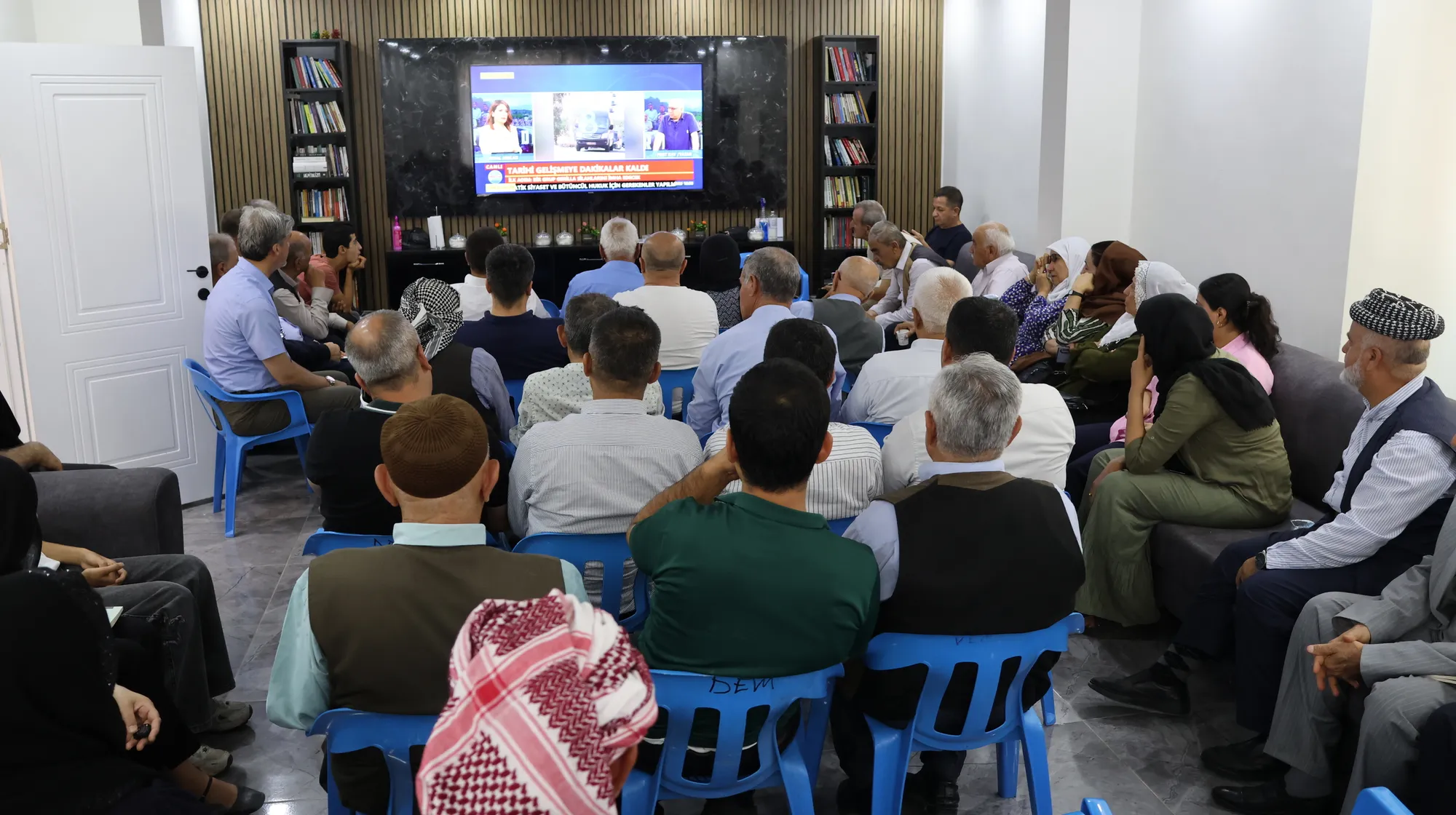 Li avahiya MEBYA-DERê ya Êlihê jî gelek welatî ji bo kêliyên dîrokî di nava kelecaneke mezin de ne.Dayikên ku li ber ekrana televîzyonê ya li eywana komeleyê disekinin, diyar kirin ku ji bo serkeftina pêvajoyê, azadiya fîzîkî ya Abdullah Ocalan şert e. Mehdiye Kaptan ku di şer de kurekî xwe winda kiriye, got: “Heta Rêbertiya me azad nebe tu tiştek azad nabe. Ne dayikên Kurd ne jî yên Tirk bila êdî tu dayik negirîn. Bila pêvajo bi aştiyê biencam bibe. Dilê me şewitî, bila ev rewş bi dawî bibe, bila pêvajo bi aştiyê tacîdar bibe.”