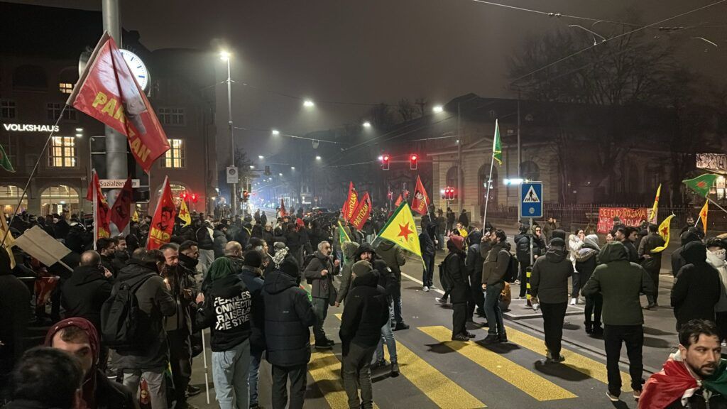 Li Duhokê gel li dijî êrişên li ser Rojava meşiya ber sefaterxaneya Tirkiyeyê û ala tirk daxist xwarê.
