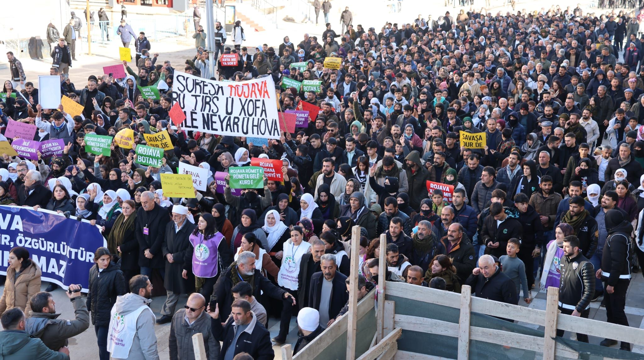 Bi deh hezaran kesên ku di nav de hevserok, parlementer û nûnerên partî, sazî û dezgehên cuda hebûn ji bo piştgiriya Rojavayê Kurdistanê meşiyan. Di meşê de deh hezar bi berzkirina dirûşmeyan meşiyan û êrişên li ser Rojava şermezar kir. Polîsan xwe li meşê ranegirtin û bi bombeyên gazê û guleyên plastîk êrişî girseyê kirin û li dijî êrişan gel dest bi berxwedanê kir. Bi hezaran kesên li kolanan belav bû, bi sloganan êrişên polîsan û çeteyên li Rojava şermezar kir.