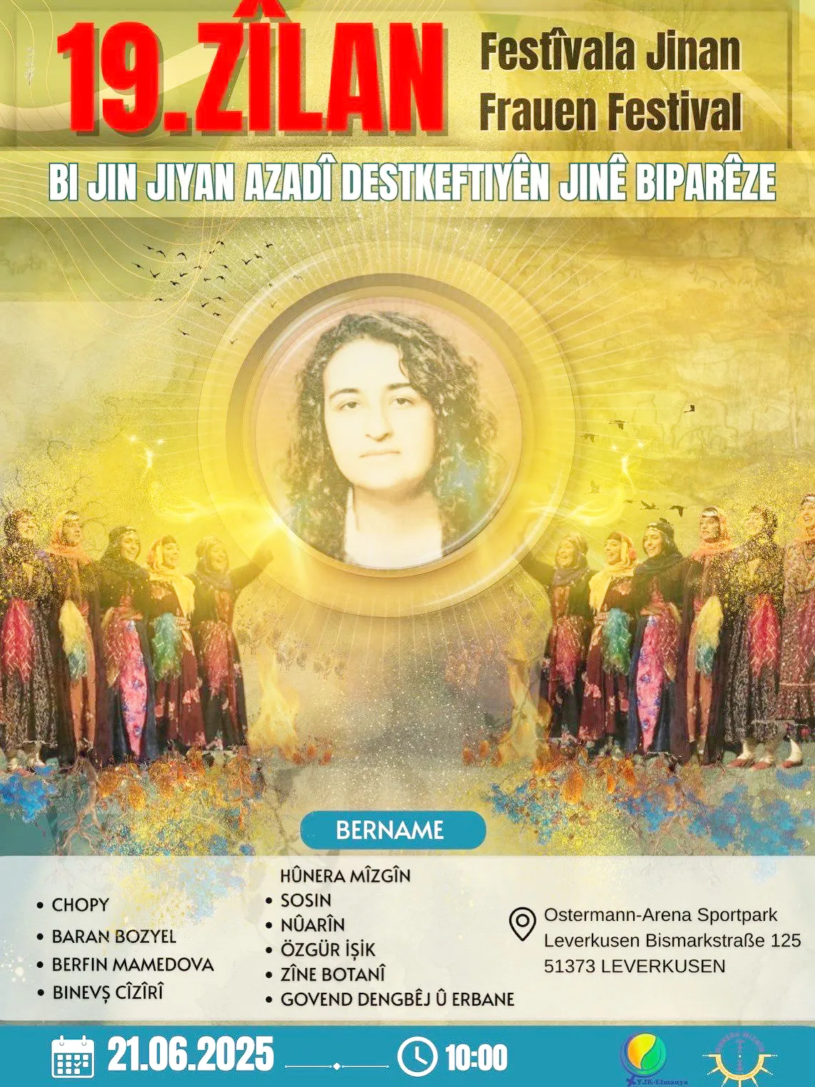 YJK-E festîvalê diyarî şehîdên jin ên têkoşîna azadiyê ya 52 salan dike. Festîval dê bi tevlêbûna jinên Kurd ên li Almanya, Belçîka û Hollandayê pêk bê. Dê gelek rêxistinên jinan, hunermend û înîsiyatîfên sivîl beşdar bibin. YJK-E dê îsal bi ruhê banga Aştî û Civaka Demokratîk festîvalê pêk bîne. Di festîvalê de hunermendên weke Chopy, Berfîn Mamedova, Baran Bozyel, Binevş Cizirî, Sosin, Nuarîn, Ozgur Işik û Zînê Botanî wê derkevin ser dikê. Her wiha bi koma Hunera Mizgîn û Zarok Ma re wê jinên dengbêj jî derkevin ser dikê. Meha hezîranê ji bo Tevgera Jinên Kurd xwedî wateyeke cûda ye. Jin hezîranê wekî meha fedaîyan pênase dikin. Jinên wekî Hanim Yaverkaya, Zîlan, Sema Yuce, Raperîn Amed, Leyla Agirî, Bêrîvan û Şaristan di vê mehê de bûn stêrk.