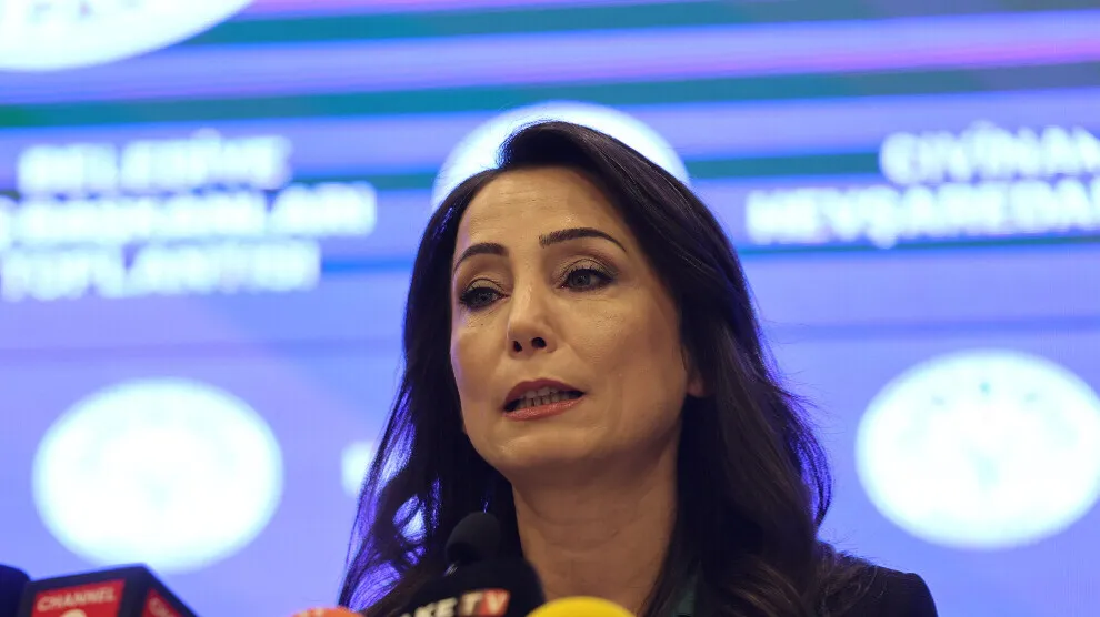 Hevseroka Giştî ya Partiya Demokrasî û Wekheviyê ya Gelan (DEM Partî) Tulay Hatîmogûllari di civîna bi hevşaredarên partiyê re de axivî.