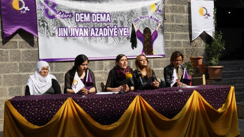 Aktîvîstên Tevgera Jinên Azad (TJA) û Komeleya Jinan a Rosayê bi armanca şermezarkirina serdegirtina saziyên jinan û binçavkirina jinan de li Avahiya HDP’ê ya Yenîşehîrêdaxuyaniyek dan. Aktîvîstên TJA’yê, endamên Meclisa Jinan a HDP’ê û Meclisa Jinan a Sosyalîst (SKM) û Alîkara Hevserokên Giştî yên Partiya Sosyalistên Bindest (ESP) Beycan Taşkiran tev li daxuyaniyê bûn.