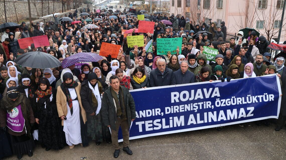 Di daxuyaniyê de parlamenterê DEM Partiyê yê Şirnexê Mehmet Zekî Îrmez axivî. Îrmez, diyar kir ku heta ku çareseriyeke mayinde ew ê li kolanan tebikoşin û wiha axivî:” Rojava,bakûre, başûre, rojhilate, rojava hişmendiya wekhevî û azadiye yê. Ew berxwedna ku gelê kurd ku hovitiya DAIŞê têk bir em ê dîsa van çeteyên DAIŞê û HTŞê têk bibin. Gelê me li her deverê cîhanê li ser piyane û dilê wan bi Rojava re ne. Em dixwazin ku xwedî statû bûn. Hêzên navnetewî dixwzin ku me bêstatû bihêlin lê em êdî vê qebûl nakin. Heta ku em bi awyeke azad li ser vê êrdnigariyê dijîn em ê li berxwe bidin. Bi şer û pêvçûnan çareserî nbe. Em gelê kurd gelek caran htin qetilkirin, hatin qirkirin lê em xelas nebûn, em li vir în. Gelê Rojava dixwazin ku li Suriyeyê bi gelan re bi awayeke xwîşk û biratî bije. Berxwedana gelê kurd dê bi xwe re serkeftinê bîne.”