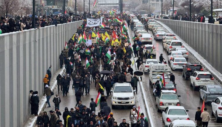 Li Silêmaniyê bi deh hezaran kes ji bo piştgiriya Rojavayê Kurdistanê dimeşin. Ligel serma û berfê jî girse bi dirûşma, Yek e yek e yek e, Kurdistan yek welat e’ wekî lehiyê diherikin.
