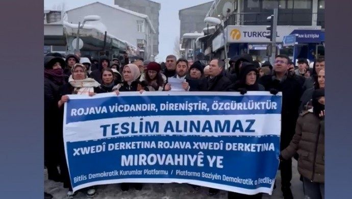 Li navçeya Norşînê ya Bedlisê girse daket qadan û êrîşên li ser Rojava şermezar kir. Polîsan her çend 8 kes binçav kirin jî girseyê meşa xwe berdewam kir.