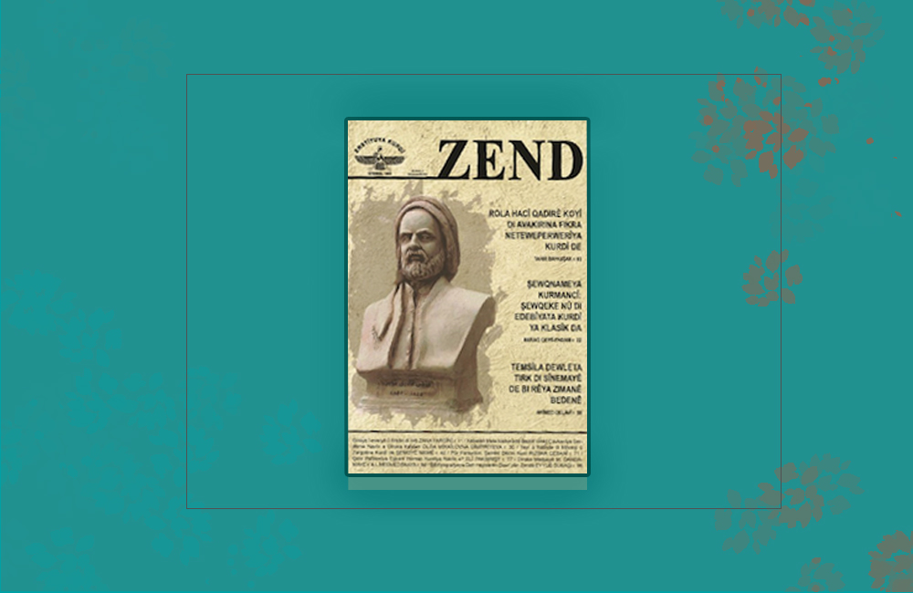 Zend, weşana Enstîtuya Kurdî ya Stenbolê ye (Navê wê yê niha; Komeleya Lêkolînên Kurdî) ye. Kovar bi naverokeke nû çap bû. Di vê hejmarê de Tahir Baykuşak li ser “Rola Hacî Qadirê Koyî di Avakirina Fikra Neteweperwerîya kurdî de” nivîsiye.