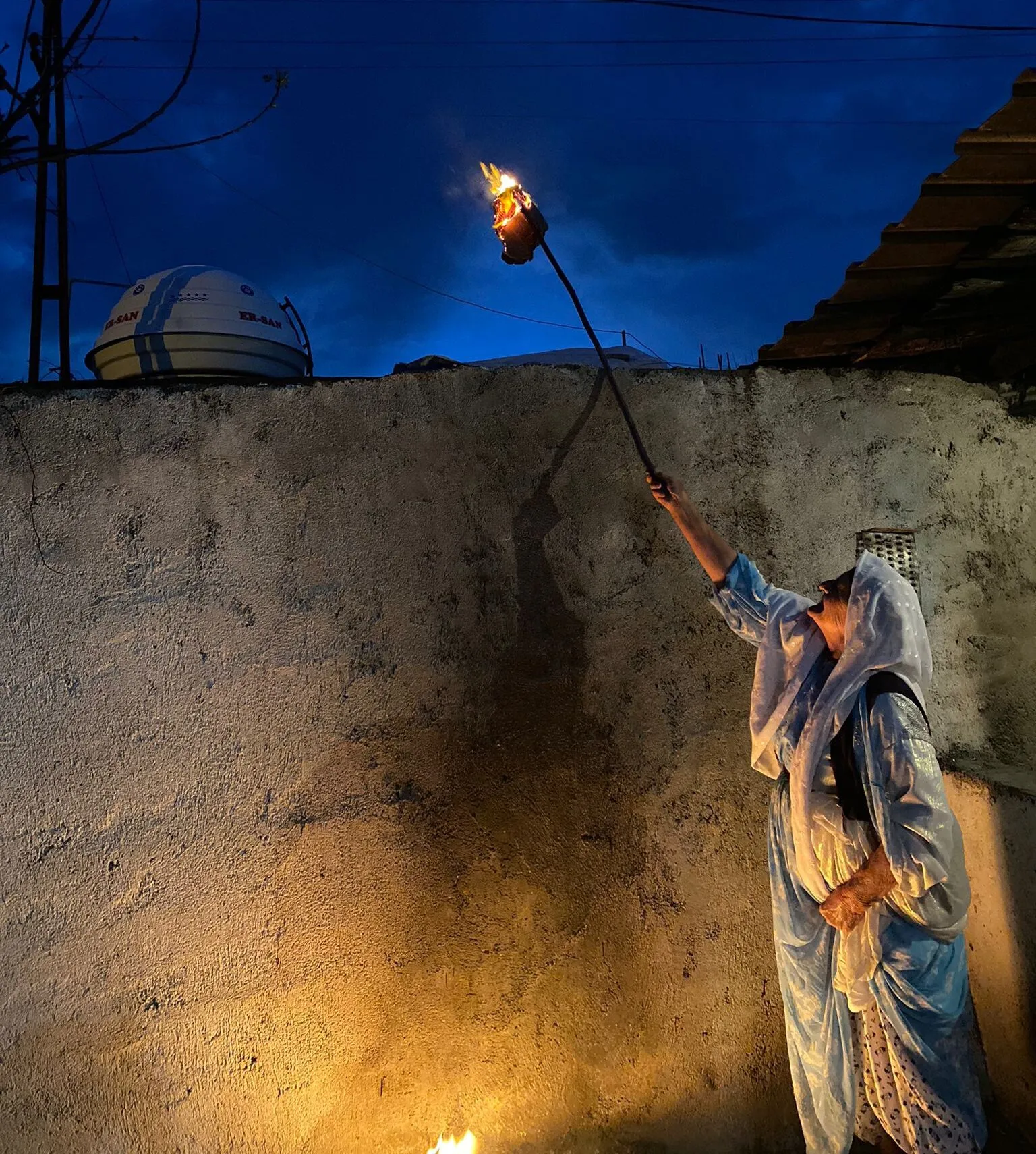 Li taxa Şehîd Harûn ya girêdayî navçeya Silopiya ya Şirnexê Esmer Şaîk a 70ê salî bi salan e li hewşa mala xwe agirê Newrozê bi tane serê xwe pêdixe.