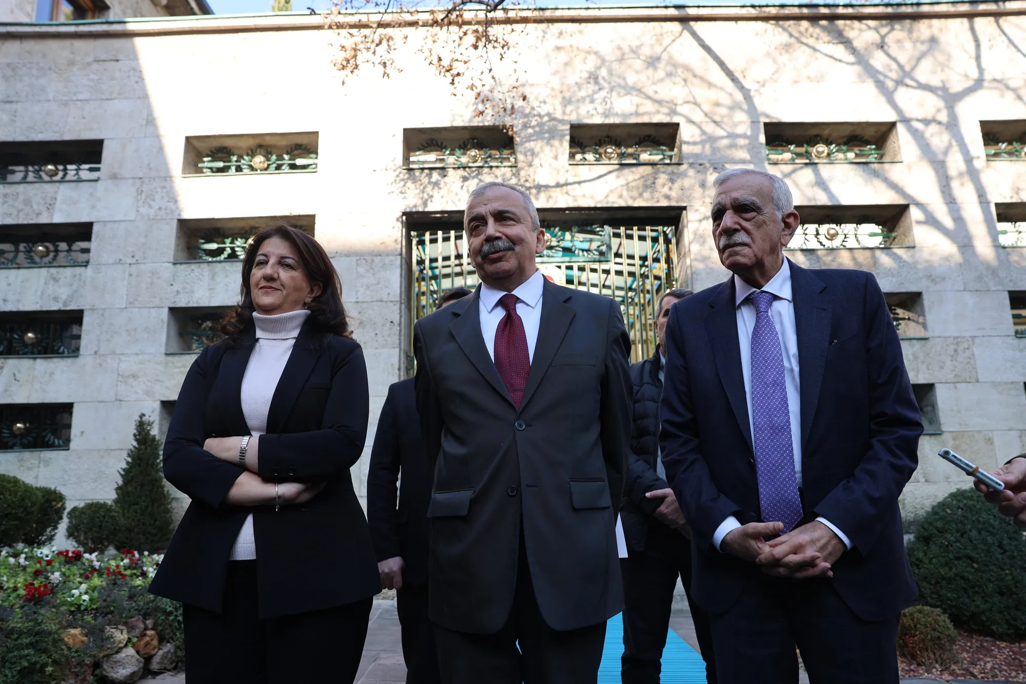 Parlamenterên Partiya Wekhevî û Demokrasiyê ya Gelan (DEM Partî) Pervîn Buldan û Sirri Sureyya Onder û hevşaredarê Bajarê Mezin ê Mêrdînê Ahmet Turk ku li şûna wî qeyûm hatiye tayînkirin, bi koma...