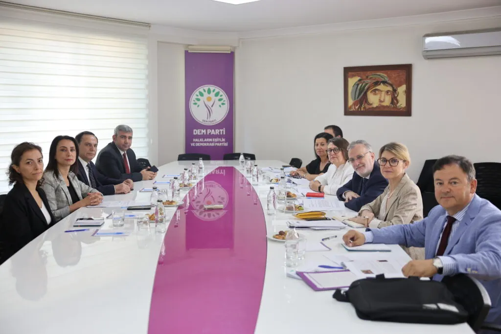 Serokê Kongreya Rêveberiyên Xwecihî yên Ewropayê Marc Cools têkildarî sepandina Şertê Rêveberiyên Xweser yên Xwecihî ya li Tirkiyeyê li gel Hevraportor Bryony Rudkin û heyeta Rêveberiyên Xweciyê ya YEyê seredana DEM Partiyê kirin.