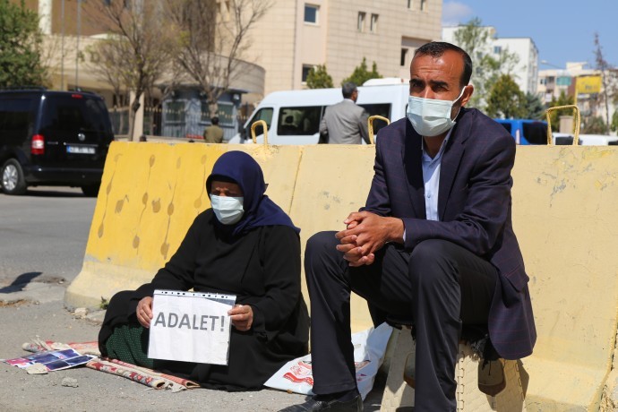 Emîne Şenyaşar û Kurê xwe Ferît Şenyaşar çalakiya xwe ya nobeta ‘Edaletê’ ya li ber Edliyeya Rihayê di roja 45’emîn de didomînin.