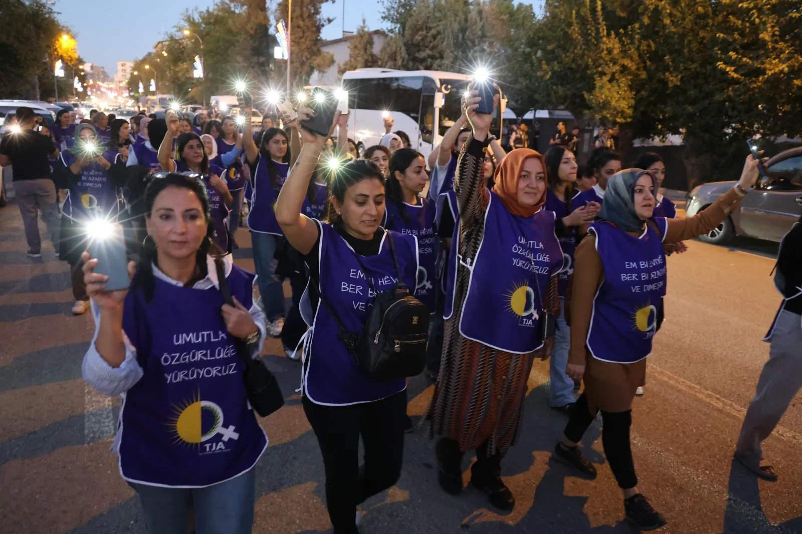 Tevgera Jinên Azad (TJA), bi boneya azadiya fizîkî ya Rêberê Gelê Kurd Abdullah Ocalan û avakirina civakek demokratîk bi dirûşma ‘Em bi hêviyê ber bi azadiyê ve dimeşin’ ji Amedê ber bi Enqereyê ve dest bi meşê kir. Di pêşengiya TJAyê de nêzê 300 jin dê 7 roj ji bo pêkanîna daxwazên xwe bimeşin heta Enqereyê. Di roja destpêkê de jin bi oxirkirina girseyeke mezin ji Amedê ber bi rawestgeha xwe ya yekemîn Hîlwanê ve bi rê ketin.