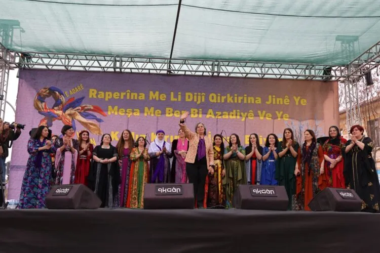 Tevgera Jinên Azad (TJA) bi tevlibûna hezaran jinan bi dirûşma “Em li dijî qirqirina jinan serî hildidin, ber bi azadiyê ve dimeşin” li Qada Îstasyonê ya Yenîşehîr a Amedê mitîngek li dar xist. Piştî peyama Rêberê Gelê Kurd Abdullah Ocalan Berdevka Meclisa Jinan a Partiya Wekhevî û Demokrasiyê ya Gelan (DEM Partî) Halîde Turkoglû, aktîvîstên TJAyê Ayla Akat Ata û Gulten Kişanak axivîn.