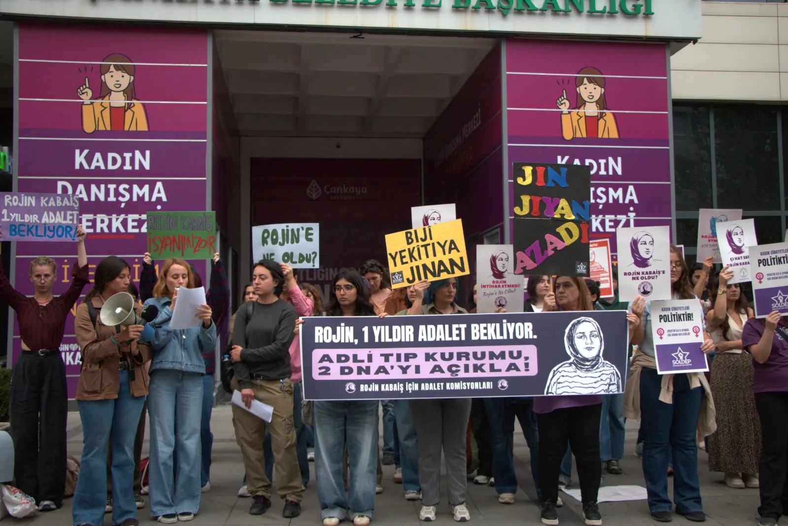 Jinan bi pêşengiya Koîsyona Ji bo Rojîn Kabaîş Edalet li Enqereyê tekildarî Rojîn Kabaîş a ku di 27ê Îlona 2024an de piştî winda bû bi awayekî guman mirî hat dîtin û tevî salek ji serê derbas bû jî faîl nehat dîtin daxuyanî dan. Daxuyanî li Rêya Sakarya ya navçeya Çankayayê hat dayîn û gelek saziyên jinan û jin beşdarî daxuyaniyê bûn. Di daxuyaniyê de pankarta "Rojîn salek e ku li pey edaletê ye, Saziya Tipa Edlî DNAya 2an aşkera bike" dinivîsî vêkirin. Her wiha jinan dovîzên ku li ser, "Çi hat serê Rojîn Kabaîş" û "Rojîn Kabaîş xwe nekuştiyê" hilgirtin. Jinan dirûşmeyên, "Jin jiyan azadî", "Jinên hatinê qetilkirin raperîna me ne" û "Zilam dikujê dewlet diparêze" berzkirin.