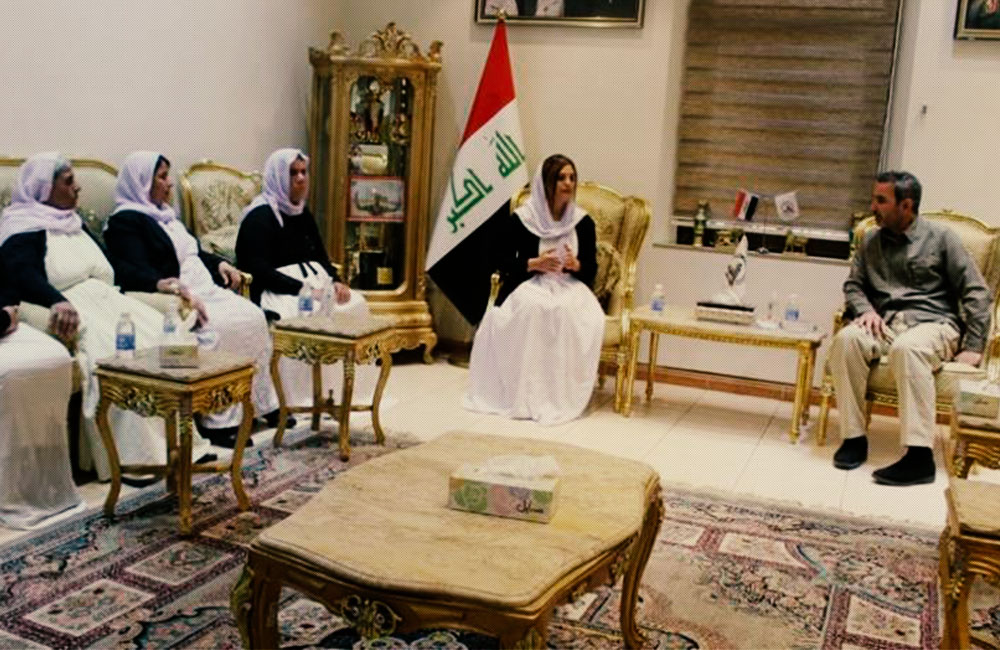 Hikûmeta Navendî ya Iraqê û Rêveberiya Herêma Kurdistanê di 9'ê cotmehê de, têkildarî Şengala ku DAIŞ'ê di 3'yê Tebaxa 2014'an de êrîş kiribû û komkujî pêk anîbû, bi peymanekê li hev kirin. Du şandeyên ji jinên êzidî pêk tên, ji bo vê yekê çûn Silêmanî û Bexdayê û hevdîtin kirin.