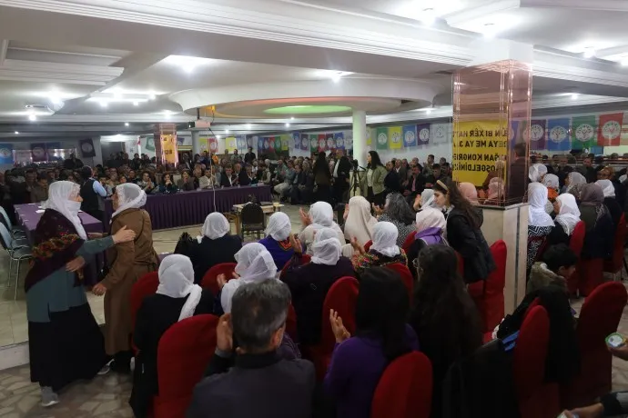 Hevserokê MED TUHAD-FEDê Kerem Canpolat axivî û bi lêv kir ku gelê Kurd li pişt banga Abdullah Ocalan e û got: “Em hêvî dikin ku pêvajoya aştî û aramiyê pêk were û dewlet jî gav biavêje. Ji bo dewlet jî gav biavejê divê em jî bêtir bixebitin. Divê malbat xwedî li sazî û komeleyên xwe derbikevin. Ev komel a me hemûyan e.”