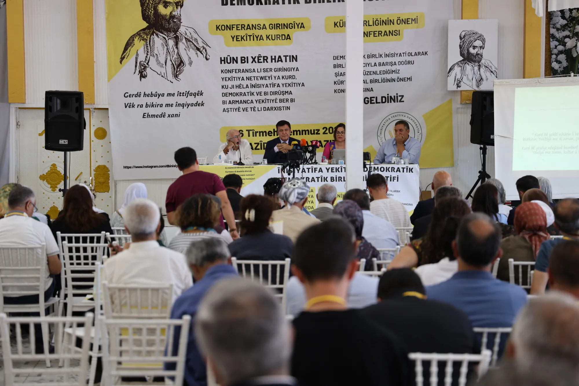Însiyatîfa Yekîtiya Demokratîk, li navçeya Bazîd a Agiriyê bi dirûşma “Bi Armanca Yekîtiyê Ber Bi Aştiyê Ve” konferansa bi navê “Girîngiya Yekîtiya Kurd” li dar dixe. Konferans, li eywananeke dawetê ya li Bazîdê dest pê kir. Hevberdevkên Însiyatîfa Yekîtiya Demokratîk Gulcan Kaçmaz Sayyîgît û Mehmet Kamaç, Hevserokên Partiya Herêmên Demokratîk ên Giştî (DBP) Çîgdem Kiliçgun Ûçar û Keskîn Bayindir, Hevserokê Partiya Demokratîk a Gelan ê Giştî (HDP) Cahît Kirkazak, siyasetmedar Gulten Kişanak, Partiyên Kurdistanî, hevşaredar û parlementerên DEM Partiyê, endam û rêveberên saziyên sivîl ên civakî û rêxistinên DEM Partî û DBPê yên bajarên Herêma Serhedê, rewşenbîr, nivîskar û gelek kes tev li konferansê bûn.