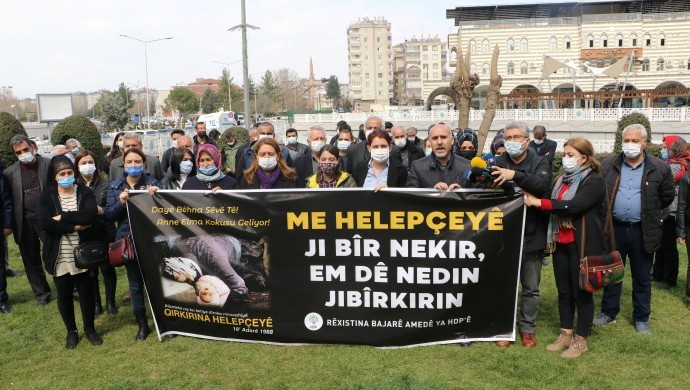 Li Amedê, HDP û DBP’ên bajêr li Parka Xezal a li navçeya Yenîşehîrê daxuyaniyek dan. Pankarta bi nivîsa ‘Me Helebçeyê ji bîr nekir, em ê nedin jibîrkirin’ hat hildan. Di daxuyaniyê de hat diyarkirin ku yên komkujiyê li kurdan dikin wê dawiya wan mîna ya Saddam be û wiha hat gotin: “Em careke din ji yên plana komkujiyan dikin re dibêjin; dawî li komkujiyên xwe yên li dijî kurdan bînin. Bi rêya aştî, demokrasî û hiqûqê ji bo çareseriyê tevbigerin. Em careke din vê komkujiyê şermezar dikin.”