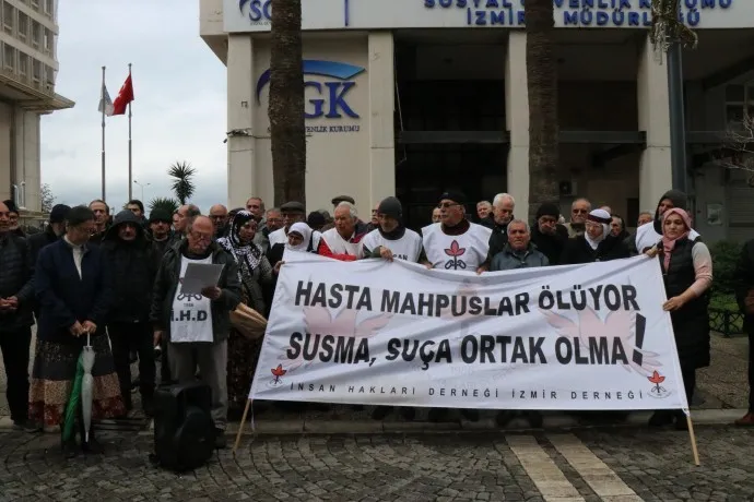 İHD İzmir Şubesi hasta tutsakların durumuna dikkat çekmek amacıyla 2 haftada bir düzenlediği eylemin 303’üncüsünü gerçekleştirdi. Konak’ta bulunan Eski Sümerbank önünde yapılan eylemde, “Hasta mahpuslar ölüyor susma, suça ortak olma” pankartı açıldı. Çok sayıda kişinin katıldığı eylemde bu hafta Elazığ Kadın Kapalı Cezaevi'ndeki hasta tutsak Besra Erol’un sağlık durumuna dikkat çekildi.