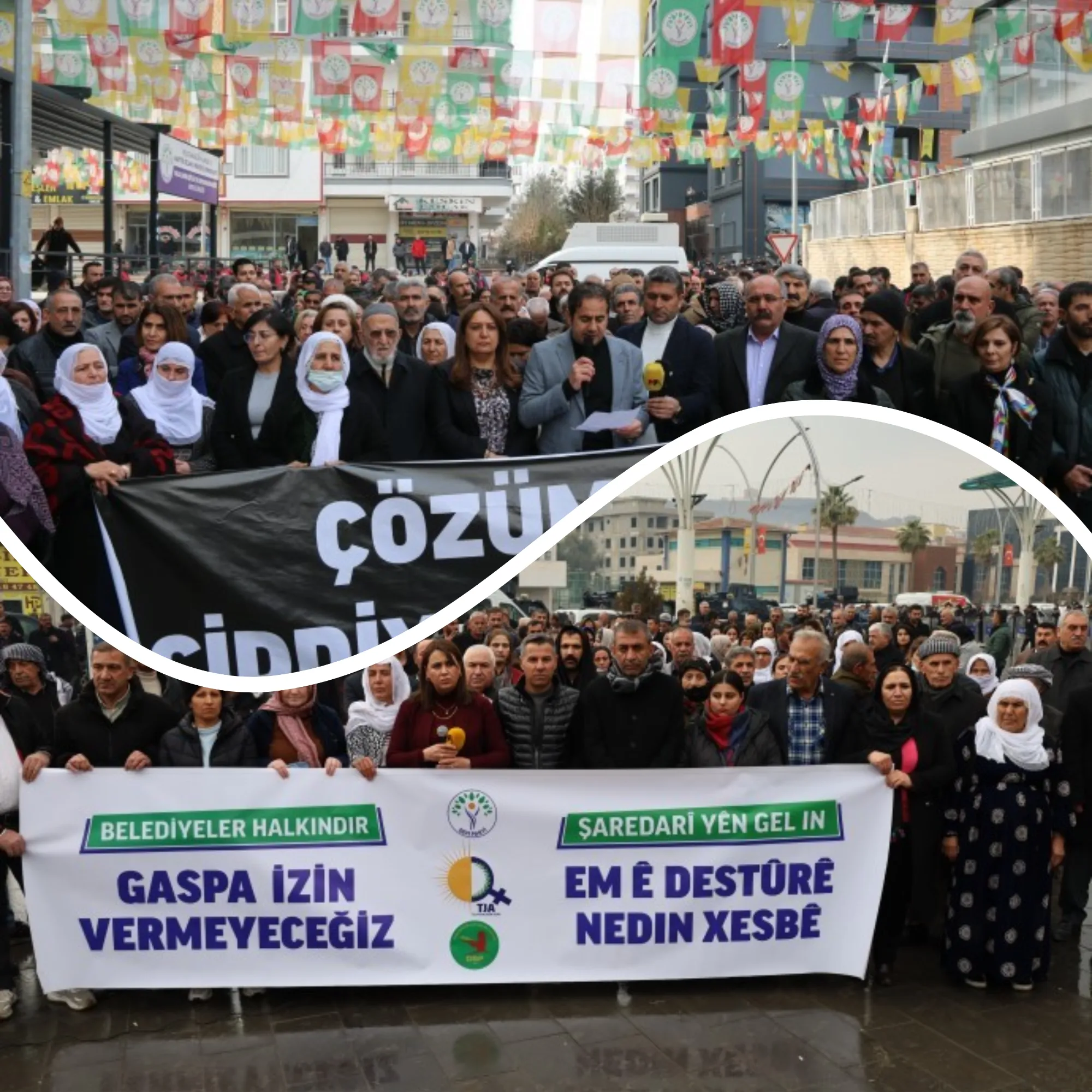 Hevserokê DEM Partiya Amedê Abbas Şahîn daxuyanî da û diyar kir ku ew desteserkirina hevşaredarên Akdenîzê û encumenan qebûl nakin û ji aliyekî ve axaftina aştiyê û ji aliyêk ve jî hewldana danîna qeyûman nayê qebûlkirin. Abbas Şahîn bi bîr xist ku bi Rêberê PKKê Abdullah Ocalan re hevdîtinek hatiye kirin û ev pêvajoya tê axaftin divê nebe qurbanê hesabên biçûk û xwest ev pêvajoya hevdîtinan bi rêk û pêk bi rê ve biçe. Abbas Şahîn bang li Serokkomar Tayyîp Erdogan ku îro li Amedê ye jî kir û xwest ku niyeta xwe ya der barê vê pêvajoya tê birêvebirin de eşkere bike.