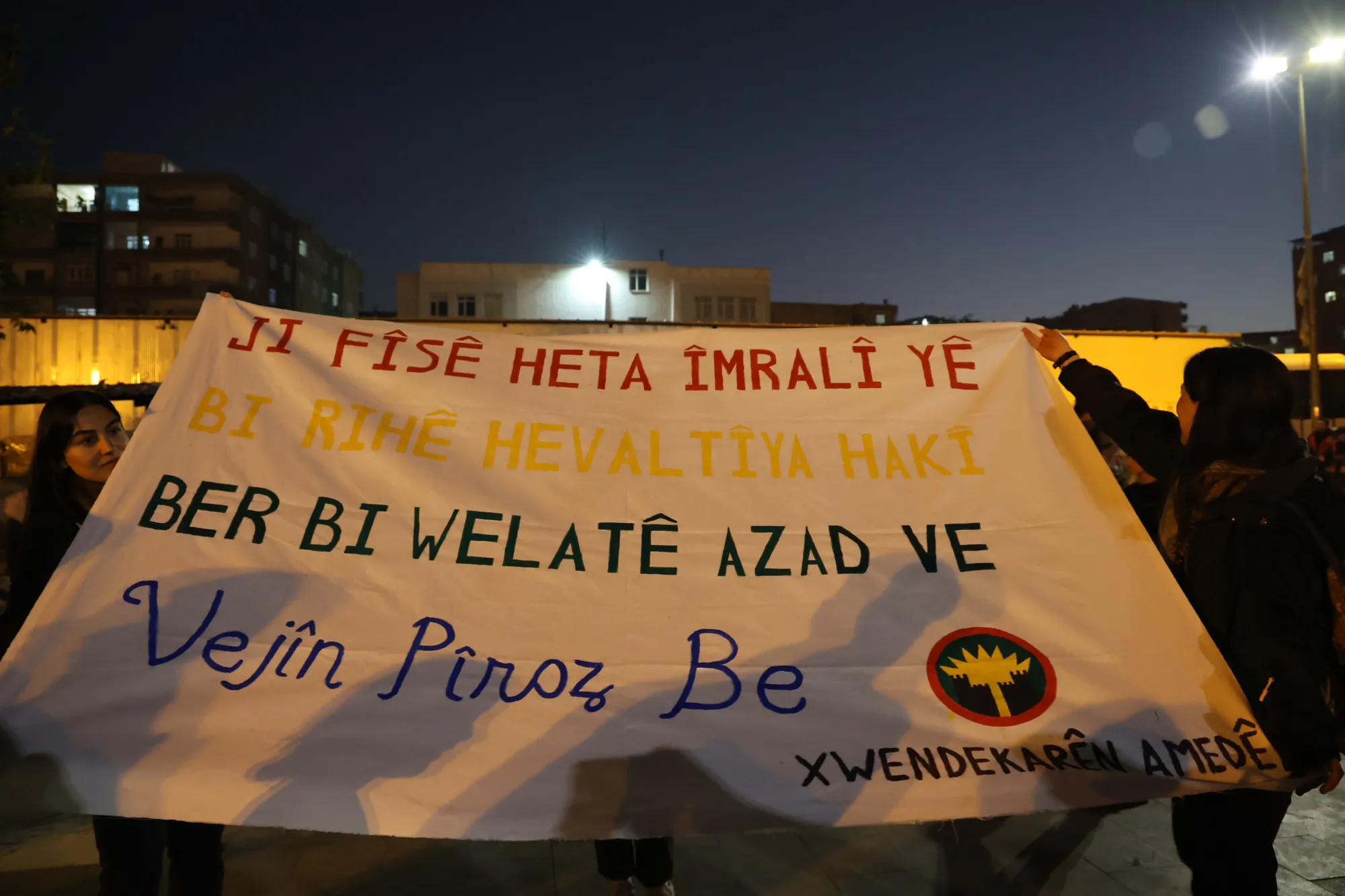 Piştî axaftinê xwendekarên Amedê bi meşelayan û pankarta “Ji Fîsê heta Îmraliyê birihê hevaltiya Hakî ber bi welatê azad ve, vejîn pîroz be” vekirin. Di çalakiyê de dirûşmeya “Bijî Serok Apo” hat berzkirin.