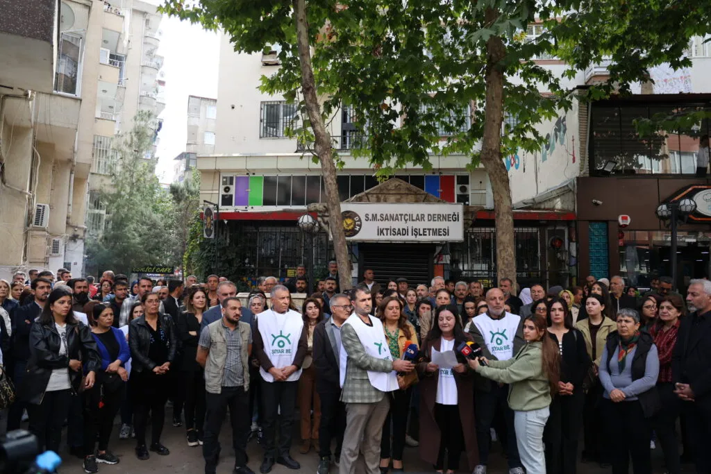 Platforma Saziyên Demokratîk, bi pêşengtiya Platforma Şiyar Be, têkildarî Roj Dem Kafeyê ya li Semta Ofîsê ya navçeya Bajarê Nû ya Amedê ku bi sepanên şerê taybet di rojevê de ye, li pêşiya Mizgefta...