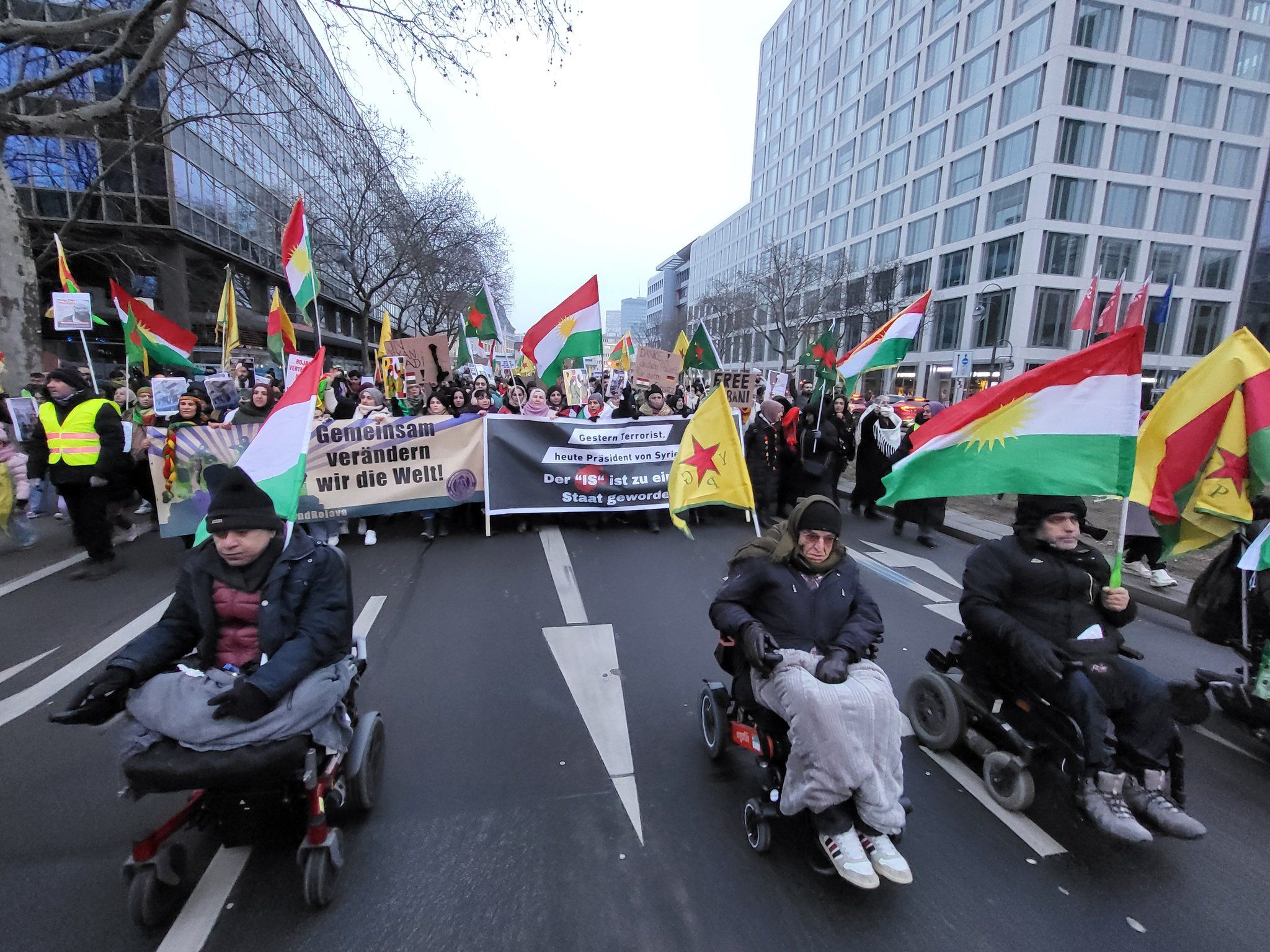 Bi deh hezaran Kurdistanî û dostên kurdan bi alên YPJ, YPG û alên kesk, sor û zer li kolana Berlînê ya Almanyayê kom bûn û meşek dirêj li dar xistin. Girseya ku bê navber dirûşmeyên “Jin Jiyan Azadî”, “Bijî Berxwedana Rojava”, “Qatil Erdogan” û “Rojava Rojhilat e, Kurdistan yek welat e” berz kirin, demek dirêj meşiyan. Girseyê her tim bi stran û dirûşmeyên xwe hêrsa xwe ya li dijî çeteyên HTŞê û Tirkiyeyê anîn ziman.