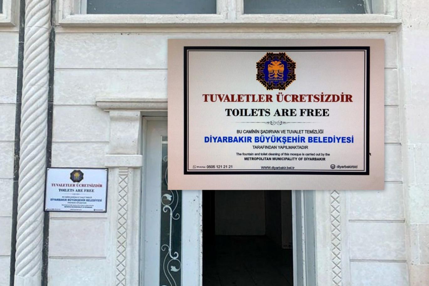 Şaredariya Bajarê Mezin a Amedê ku di 19’ê tebaxa 2019’an de qeyûm tayînê wê hat kirin, 22 mizgeftên li bajar sererast kirin. Şaredariya ku ji aliyê qeyûm ve tê birêvebirin, piştî sererastkirinê, daşirên van mizgeftan jî kirin bê pere. Tabelayên hişyariyê yên ji bo vê rewşê, li têketina daşiran hat daliqandin bi tirkî û îngilîzî ne. Amed bajarekî kurdan e û bi salan xizmetên şaredariyê ji aliyê rêveberiya HDP’ê ve bi kurdî û tirkî dihat dayîn. Lê li gel vê yekê jî qeyûm xizmeta bi kurdî rakir û li şûnê îngilîzî bi cih kir. AMED