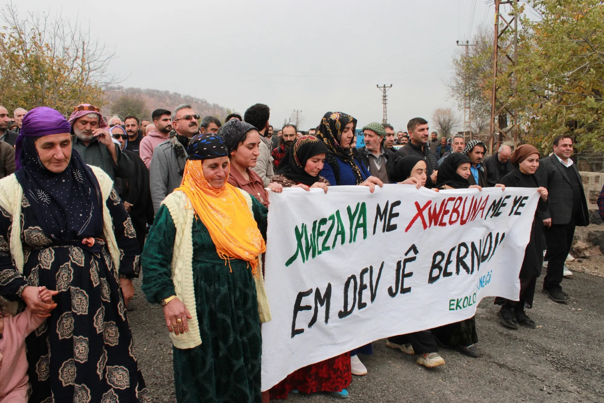 Piştî axaftinê girse ji nav gund heya gire ku kan lê hatiye çêkirin meşiyan. Di meşê de pankarta “Xwezaya me xwebûna me ye, em dest jê bernadin” û dowîzên “Em hemberê talanê xweza û jiyana xwe diparêzin” û “Evv der warê bapîr û dapîrên me ne” hatin hilgirtin.