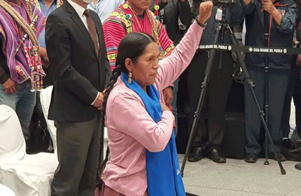 Jina têkoşer Sabîna Orelanna, di heman demê de temsîlkara Konfederasyona Neteweyî ya Jinên Gundî û Niştecihên Bolîvyayê ye. AMED