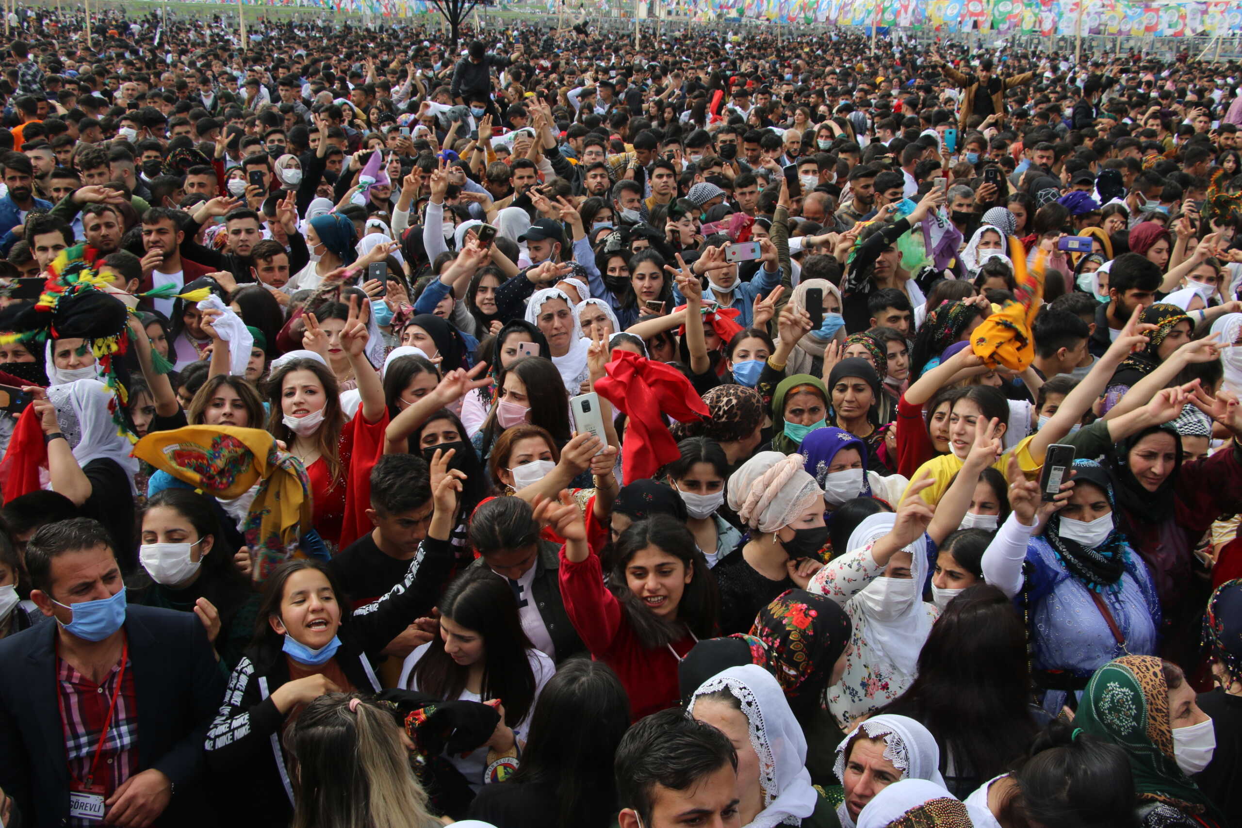 Li Êlihê qada Newrozê bi zêdetirî 100 hezar kesî hat dagirtin. Hevserokê KCD’ê û parlamenter Berdan Ozturk, parlamenterên HDP’ê Feleknas Uca, Ruştu Tiryakî û Necdet Îpekyuz û nûnerên saziyên civakî beşdarî pîrozbahiyê bûn. Berdan Ozturk anî ziman ku Ocalan îradeya gel e û divê bi Ocalan re hevdîtin were kirin.