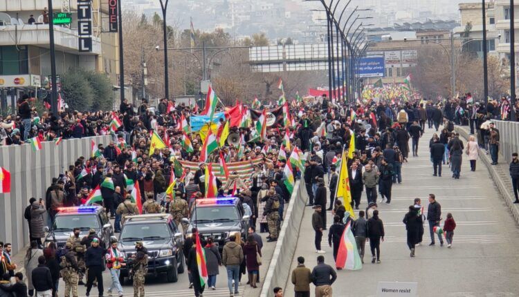 Bi beşdariya deh hezaran kesan çalakiyên ji bo piştgiriya berxwedana Rojavayê Kurdistanê bi dirûşmeya “Îna Kurdan” li Silêmaniyê dest pê kir.