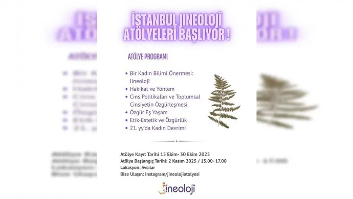 Li Stenbolê atolyeya Jineolojiyê yên sala 2025an dest pê dike. Dîroka qeydên atolyeyê di navbera 15-30ê cotmehê de ye. Qeydên atolyeya ku dê 2yê mijdarê dest pê bike, dê li ser navnîşana instagram/jineolojiaolyeleri bidomin. Bernameya atolyeya ku dê li navçeya Avcilar a Stenbolê bê destpêkirin, diyar bû.