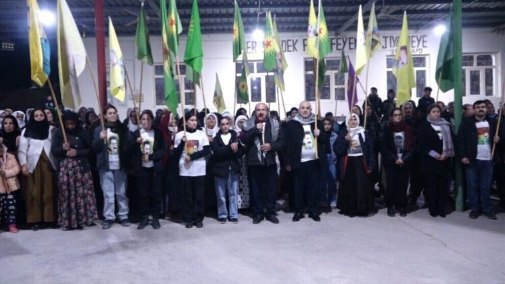Çomlek bal kişand ser êrişên li ser Rojava û wiha pêde çû: “Wek tê zanîn ev demek dirêj êrişek hovan li hemberî gelê yê Rojavayê Kurdistanê tê kirin. Gelê me yê Rojavayê Kurdistanê rastî komployek navdewletî hat. Civaka Rojavayê Kurdistanê ev bêbextî heqne kiribû. Em bi hêza gelê xwe û şervanên gelê Kurd bawerin ku çawa di sala 2014an de li hemberî çeteyên DAIŞê bi serkeftin, wê îro jî vê çalakiyê biserbixin. Em bi hêza xwe bawer in.” Di merasîma dewrgirtinê de diruşmeyên, ‘Bijî Serok Apo’, ‘Bê Serok jiyan nabe’, ‘Bijî bexwedan Rojava’ û ‘Jin jiyan azadî’ hatin qêrîn.
