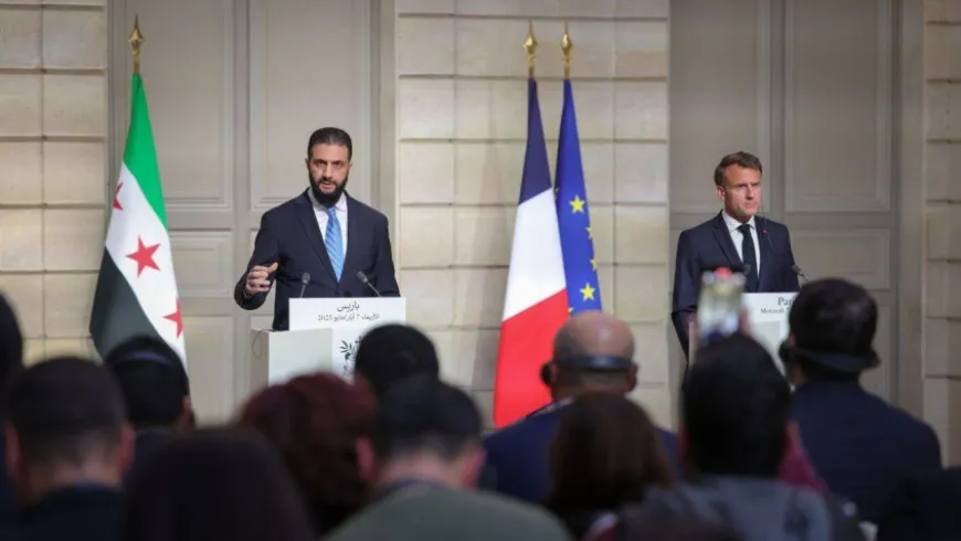 Şandeya desthilata Şamê ya di pêşengiya serokê desthilata Şamê Ehmed Şera, li Qesra Elysee bi Serokomarê Fransayê Emmanuel Macron re civiya. Piştî civînê daxuyanî hat dayîn.