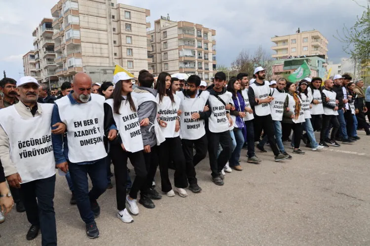 Ciwanên ku bi boneya 76emîn rojbûna Rêberê Gelê Kurd Abdullah Ocalan bi şiyara “Bi civaka demokratîk em ber bi azadiyê ve dimeşin” ji Amedê ber bi Amarayê ve dimeşin, çûn serdana Goristana Curnê Reş. Ciwanan gorên kadroyên pêşeng ên PKKê yên di salên 1979-80an de jiyana xwe ji dest dane Cuma Tak, Salîh Kandal, Emîn Yavûz, Halîl Çavgun, Sûltan Yavuz, Hanim Kaya, Fîdan Kaya, Berfîn Yetkîn ên di têkoşîna azadiyê de jiyana xwe ji dest dabûn, li Goristana Hîlvanê ya Asrî ziyaret kirin. Tevî ciwanan xwişka Salih Kandal Aynur Yilmaz û Parlamentera DEM Partiyê ya Mêrdînê Bêrîtan Guneş Altin jî tevli serdanê bûn. Bîranîn bi deqîqeyek rêzgirtina ji bo bîranîna kesên di têkoşîna azadiyê de jiyana xwe ji dest dane dest pê kir. Ciwanan piştî serdana goristanê kirin, ber bi Rihayê ve derketin rê.
