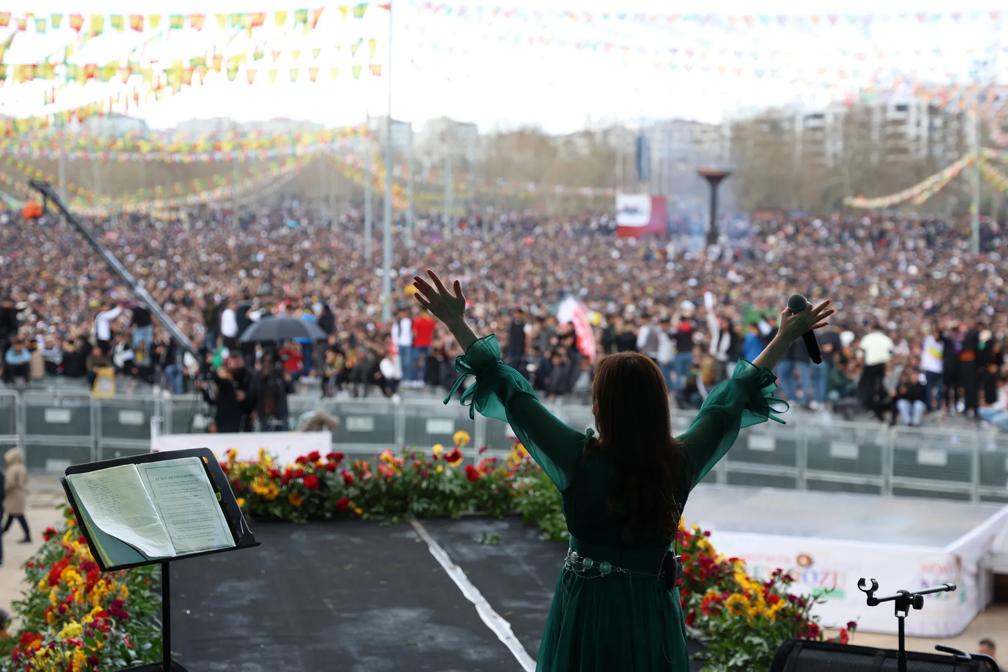 Pîrozbahiya Newrozê ya li Parka Newrozê ya navçeya Rezan a Amedê bi dirûşmeyên "Rêbertiya Azad Civaka Demokratîk" û "Ji bo Azadiyê Civaka Demokratîk" hat lidarxistin bi dawî bû.