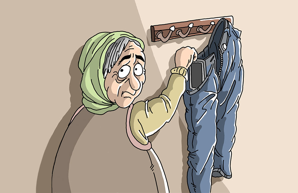 Jinik pêşî li xwediya hembêza henûn geriya dît ku diya wî ye; paşê li xwediya hêsra xweşik geriya dît ku xwişka wî ye; dawî li şahînşaha xwenên min geriya dît ku telefona wê bixwe ye. Li ser vê yekê jinik gelekî li ber xwe ket ku çawa ji bo hevserê xwe wiha fikiriye. Ji bo ku xwe bide efûkirin meaşê xwe yê mehekê da hevserê xwe; xwişka wî gustîla destê xwe dayê û diya wî jî bazinê xwe da kurê xwe û got binêrin kurê min çiqasî mirovekî hêja ye. Piştî ewqas diyarî mêrik ew tiştên ku gihabûn ser hev tev firotin û ji yara xwe ya nû re diyariyek xweşik kirî. Navê wê jî di telefonê de hebû lê wî navê heskiriya xwe ya nû kiribû Evdoyê Temîrcî. Loma bala hevsera wî qetnekişandibû. Wey qeda bi bextê mêrên tolaz bikeve, ma pepûka xwedê ji ku zane, navê yara xwe kiriye Evdo.