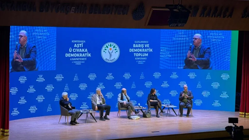 Konferansa Navneteweyî ya Aştî û Civaka Demokratîk a DEM Partiyê li Navenda Çandê ya Cem Karaca ya Stenbolê bi axaftinan berdewam dike.