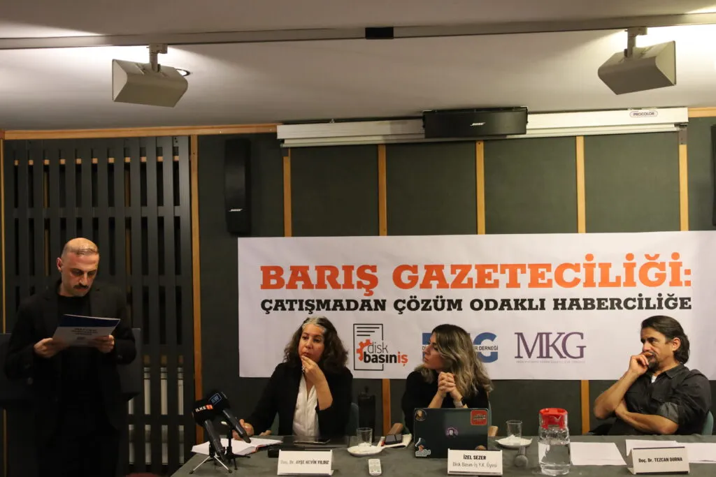 Komeleya Rojnamegeran a Dicle Firatê (DFG) û Komeleya Rojnamegerên Jin ên Mezopotamyayê (MKG) û DÎSK-Basin-Îş li avahiya Weqfa Rojnamegeriya Lêkolînêr a Ugur Mumcu ya li navçeya Çankayayê panela, “Rojnamegeriya Aştiyê” li dar xist. Moderatoriya panelê Endama Rêveberiyê ya Basin İşê Îzel Sezer kir û Dr. Tezcan Durma û Doç.Dr Ayşe Nevîn Yilmaz jî weke panelîst beşdar bûn. Panel bi axaftina Îzel Sezer ve destpêkir. Îzel Sezer anî ziman ku li ser zimanê aştiyê yê medyayê nirxandin dê bên kirin.