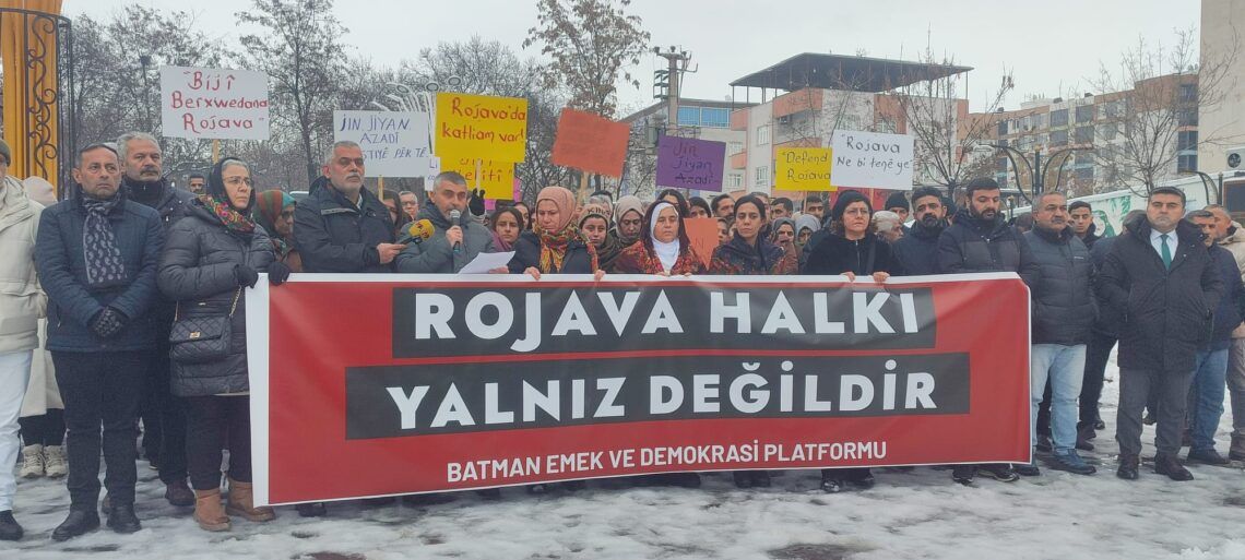 Platforma Ked û Demokrasiyê ya Êlihê têkildarî êrişên ku li rojavayê Kurdistanê û bakur û rojhilatê Sûriyeyê têne kirin de daxuyanî da çapemeniyê. Di daxuyaniyê de Rêxistina DEM Partiyê, DBPê, TJAyê, ARÎ-DER, Navenda Çandê ya Baharê, Egîtîm Sen, MEBYA-DER, TAUY-DER, ÎHD û OHD tev li daxuyaniyê bûn. Girseya ku tev li çalakiyê bibû pankarta “Gelê Rojava ne bi tenê ye” hiligirtin û li ser dovîzan ‘Bijî berxwedana Rojava’, ‘Jin Jiyan Azadî, bi aştiyê pêk tê’, ‘Li Rojava komkujî pêk tê’, ‘Bijî yekîtî’ û ‘Rojava ne bi tenê ye’ hatin bilindkirin. Her wiha girseyê dirûşmeyên ‘Bijî berxwedanan Rojava,’ ‘Rojava rûmet e rûmeta gelê Kurd e’ û ‘Jin Jiyan Azadî’ hatin berzkirin. Metna daxuyaniyê ji aliyê rêveberê Egîtîm Senê Ramazan Bîlmez ve hate xwendin.