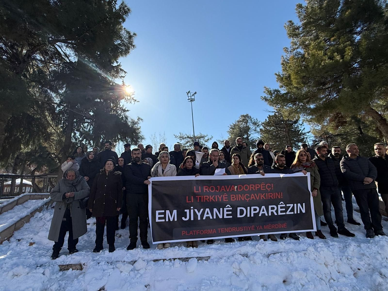 Endam û nûnerên Platforma Tenduristiyê ya Mêrdînê li Parka Karayolu ya Mêrdînfê daxuyanî da. Parlamenterên DEM Partiyê û nûnerên saziyên civakî jî beşdarî daxuyaniyê bûn. Komê di çalakiyê de pankarta "Li Rojava dorpêçî, li Tirkiyeyê îşkence heye, emê jiyanê biparêzin" vekir. Li ser navê Platformê Bijîşk Kamuran Yildirim daxuyanî da. Kamuran Yildirim, li ser navê Platformê diyar kir ku ew wekî kedkarên tenduristiyê û qada tenduristiyê dixwazin li dijî dagirkirina Tirkiyeyê dengê xwe bilind bikin û got: "Bûyerên îşkence, muameleyên xerab raste rast bandorê li ser mafê mirovan ê tenduristiyê dike. Ev êrîşên li dijî mafên tenduristiyê ne."