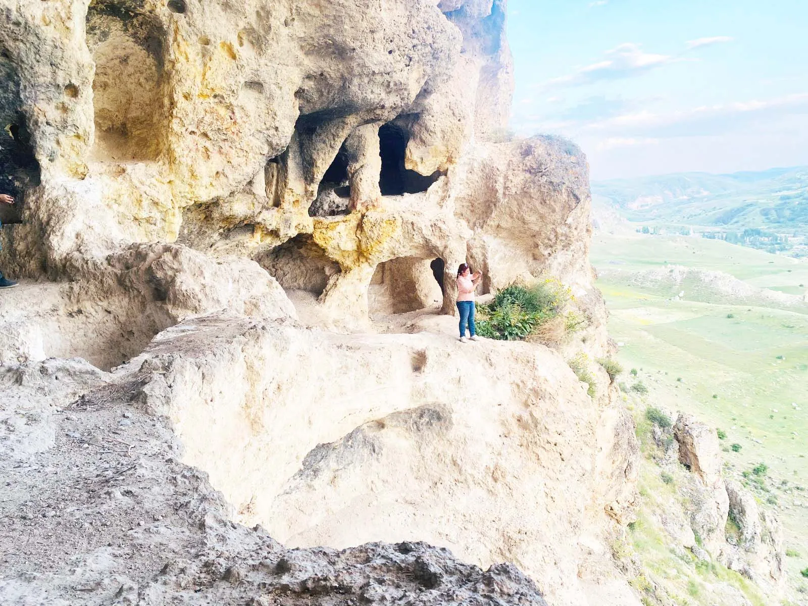 Me di deriyê şikeftê de li manzareaya hember nêrî. Bi rastî jî xuyangek pir nuwaze bû, mirov jê têr nedibû. Em ketin hundirê şikeftê. Çend qatî bû û her qat jî ji çend beşan pêk dihat. Em di odeyekê re derbasî yeka din dibûn û digihîştin balkonekê. Em hemû heta qata duyem çûn. Lê qata sêyem gelekî asê bû, tenê rênîşê me û hevalakî karîn biçin wir û ji bo me çend dîmenan bikişînin.