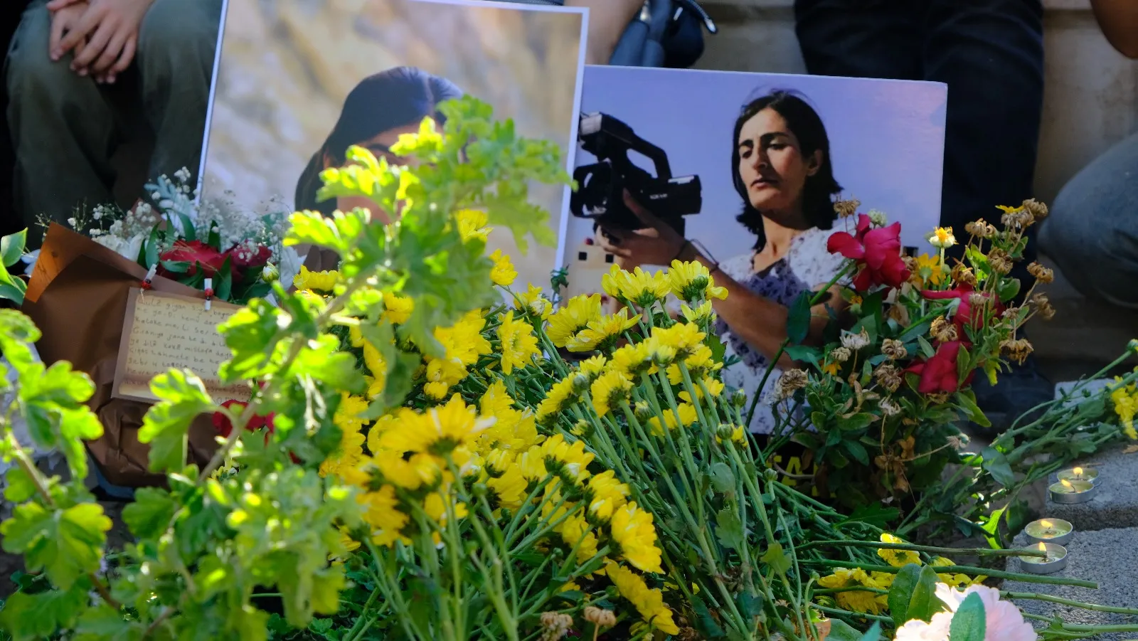 Koma ku li ser gorê kom bûn ewil ji bo hemû şehîdên çapemeniyê deqeyekê rêz girtin. Piştî rêzgirtinê, hevalên wê yên rojnameger û endamên malbatê qurnefilên deste xwe danîn ser gorê û dua xwendin.
